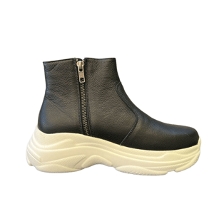 Botín de cuero, diseñado en cuero texturizado en color café, posee elástico intermedio que permite mejor calce, a todo tipo...