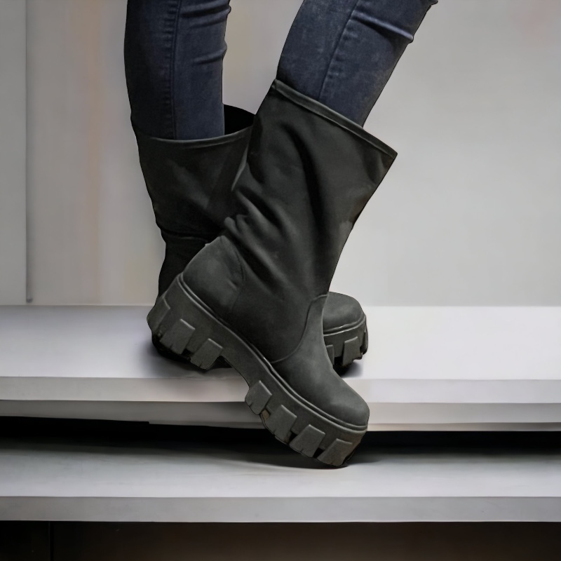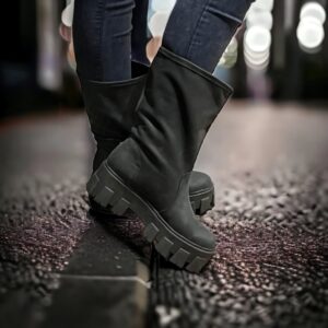 Topísima bota, confeccionada en cuero color negro opaco, comodísima plataforma, blanda y liviana, su diseño casual con un olgado ancho en contorno de pierna, para un calce arrugado, relajado y perfecto. Disfruta de la exclusividad de este hermoso modelo, inspirado para usarlo en forma frecuente y abrigar las bajas temperaturas de esta temporada.