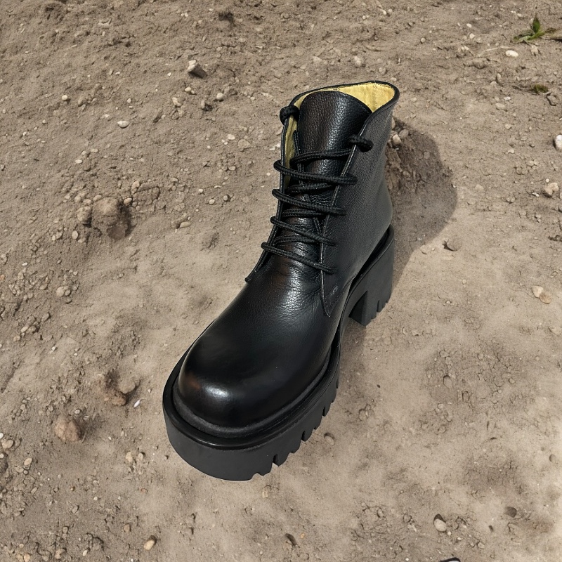 Botín 100% de cuero, diseñado con hermosa plataforma en tendencia, de tamaño y peso gratificantemente apropiado, que te permitirá usarlo de manera frecuente, por su comodidad y para abrigar las temperaturas de esta temporada. Versátil y olgado a la altura de tobillo, perfecto match para tu closet.