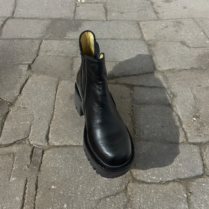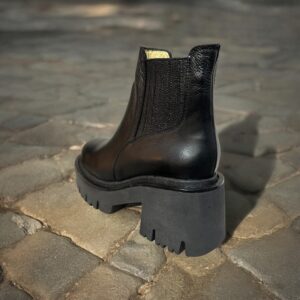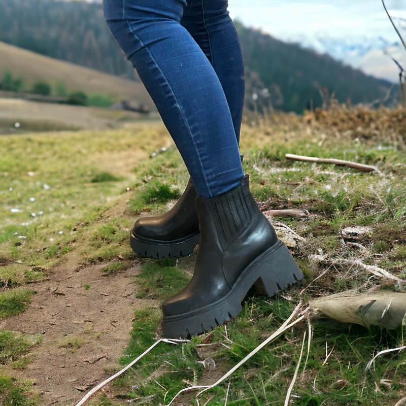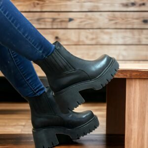 Botín 100% de cuero, diseñado con hermosa plataforma en tendencia, de tamaño y peso gratificantemente apropiado, que te permitirá usarlo de manera frecuente, por su comodidad y para abrigar las temperaturas de esta temporada. Versátil y holgado a la altura de tobillo, perfecto match para tu closet.
