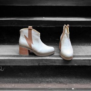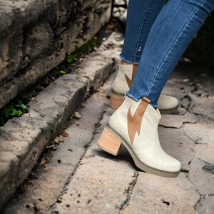 Botín de cuero diseñado con un relieve a un costado exterior, en cuero color camel. Versátil y olgado a la altura de tobillo, perfecto match para tu closet.