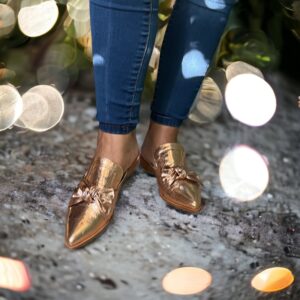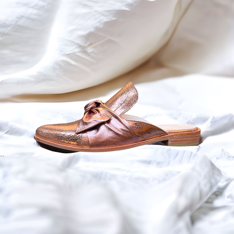 Babucha de mujer, calzado ligero sin talón, calidad única en cuero, con un atractivo diseño en cuero color rosado metálico, suave interior de cuero natural, muy cómodo, sin altura. Disfruta este hermoso modelo, inspirado para usarlo en forma frecuente, versátil para todo tipo de vestuario.